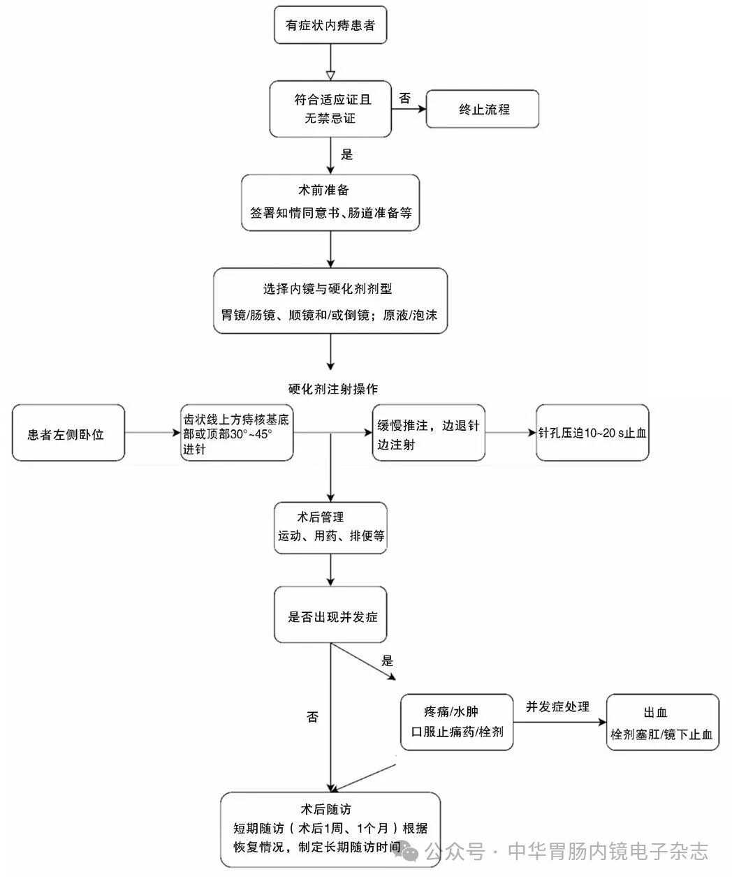 海峡两岸医药卫生交流协会消化内镜学分会痔学组.消化内镜下内痔硬化剂注射术专家共识(2025,广州)[J/OL].中华胃肠内镜电子杂志,2025,12(4):225-240.