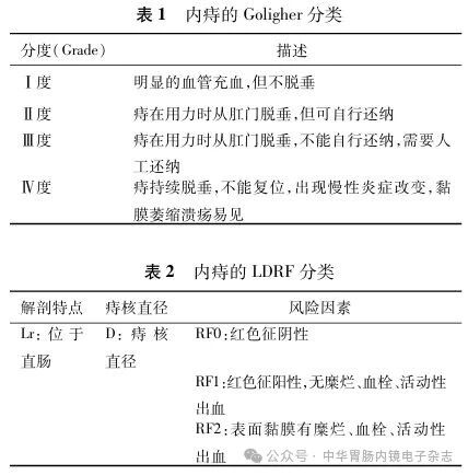 (3)结直肠镜检查:结直肠镜检查在内痔患者中具有重要意义,不仅可进一步评估痔核,还能诊断处理结直肠其他病变[42,48-51,51-57]。