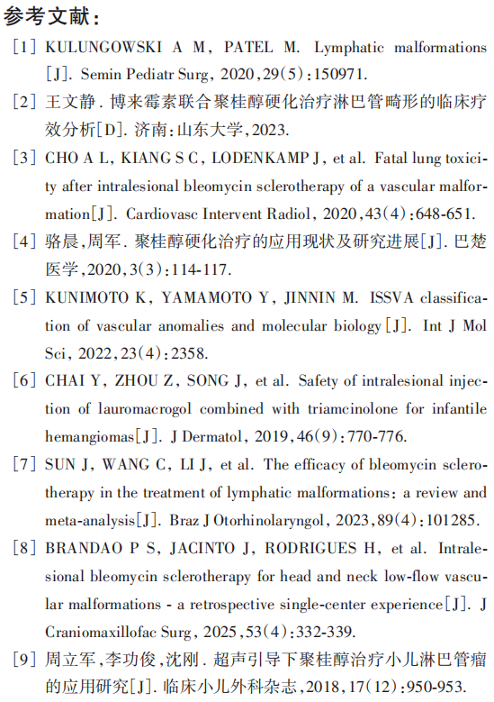 文献推荐 | 超声引导下博来霉素联合聚桂醇经皮瘤内注射硬化治疗儿童淋巴管畸形疗效