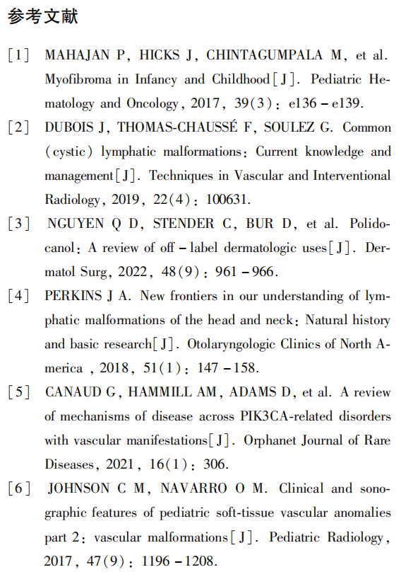 关键词:超声;聚桂醇;头颈部;淋巴管畸形;大囊型