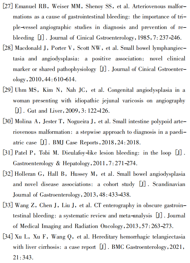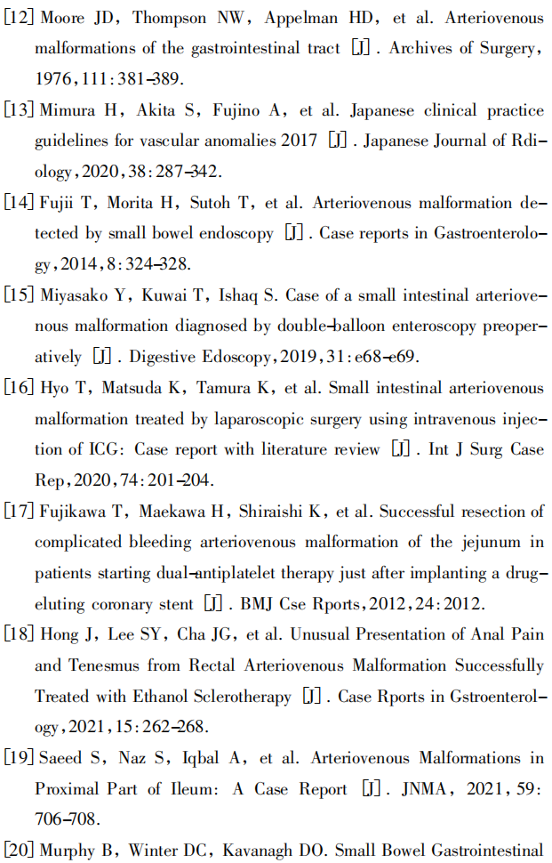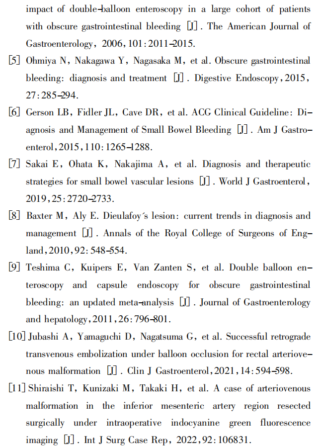 关键词:小肠出血; 动静脉畸形; 气囊辅助小肠镜; 内镜治疗