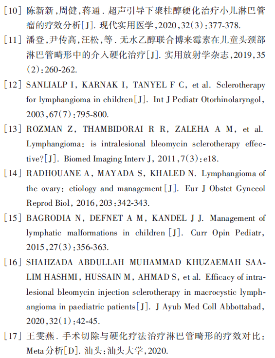 关键词:儿童淋巴管畸形;硬化治疗;博来霉素;聚桂醇