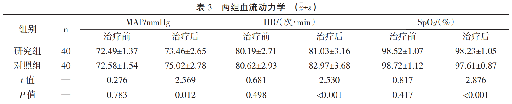 术后,联合组的 MAP、HR 指标比对照组高,SpO2?指标则比对照组低(P<0.05),见表 3。