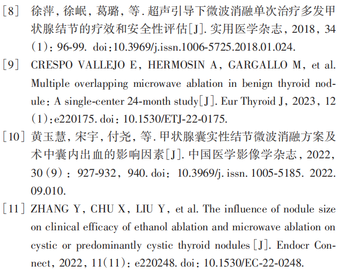 关键词:甲状腺结节; 微波消融; 聚桂醇注射; 结节体积缩小率