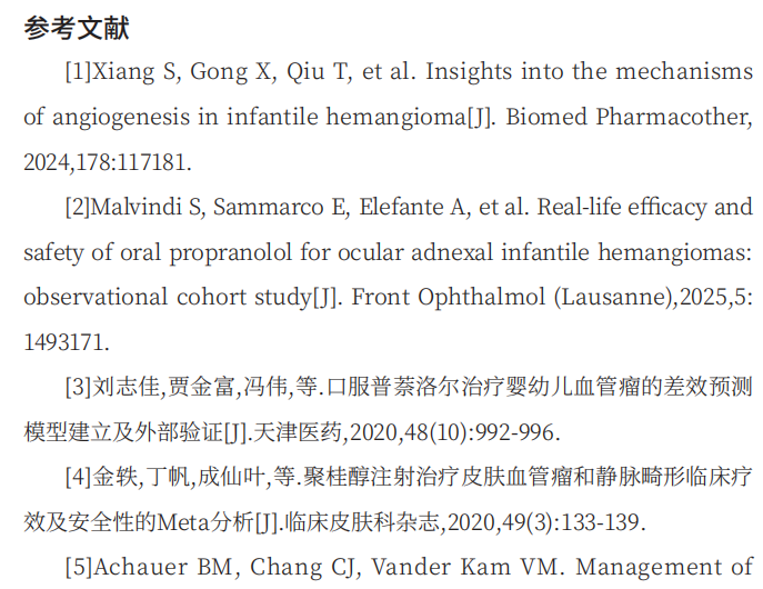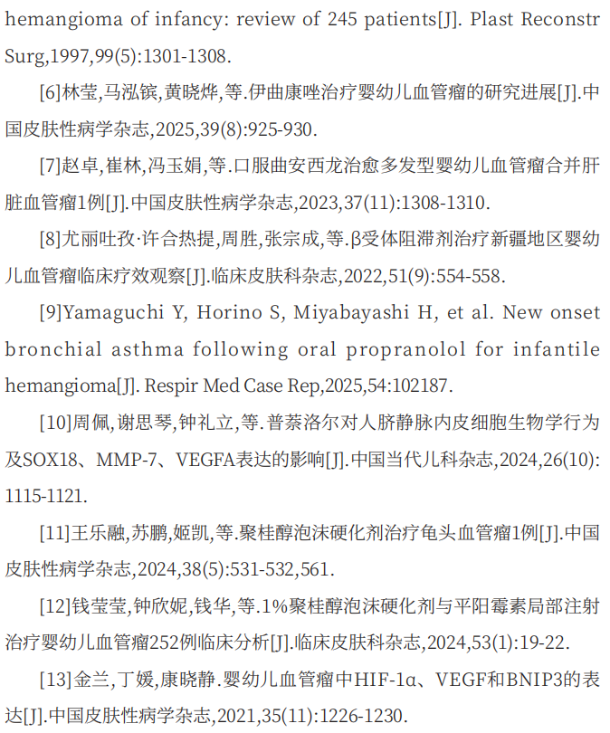 关键词:聚桂醇;普萘洛尔;婴幼儿血管瘤;局部注射