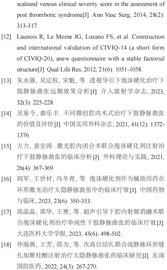 第2期高位结扎剥脱术联合泡沫硬化剂注射治疗下肢静脉曲张的临床疗效