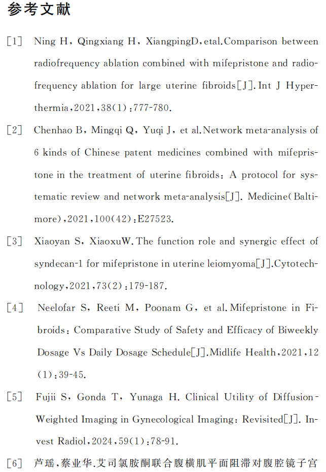 关键词:子宫肌瘤;米非司酮;超声;聚桂醇;宫颈微循环;性激素;临床疗效;复发